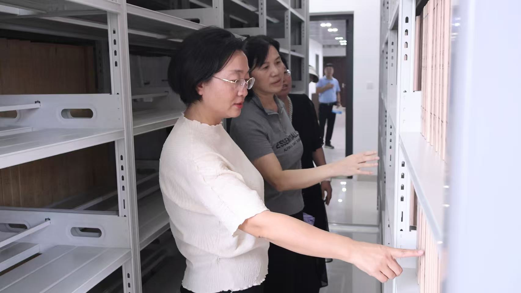 本网讯 (党政办 陈知湘)9月1日,我校求实楼C座四楼新档案室建成投入使用,当日上午,校党委书记段美娟实地调研档案建设工作。党委委员、副校长莫文斌,党委委员周红才,党政办公室等相关职能部门负责人参加。