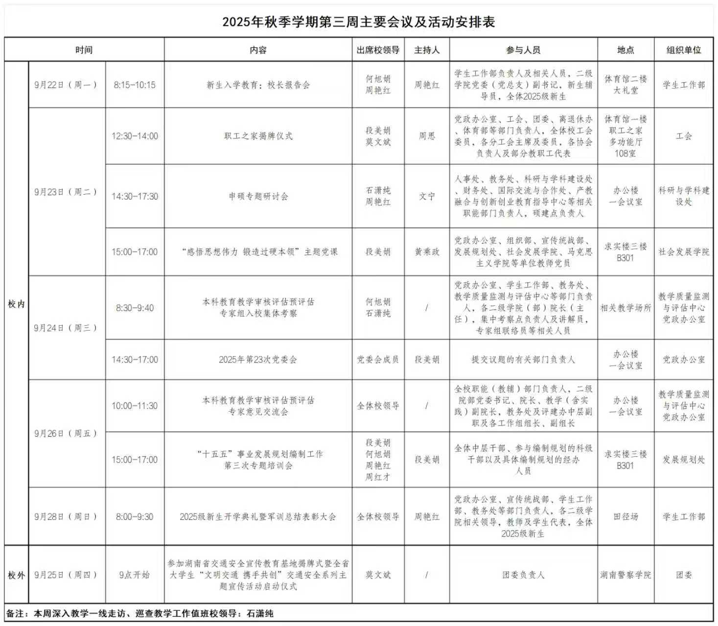 2025年秋季学期第三周主要会议及活动安排
