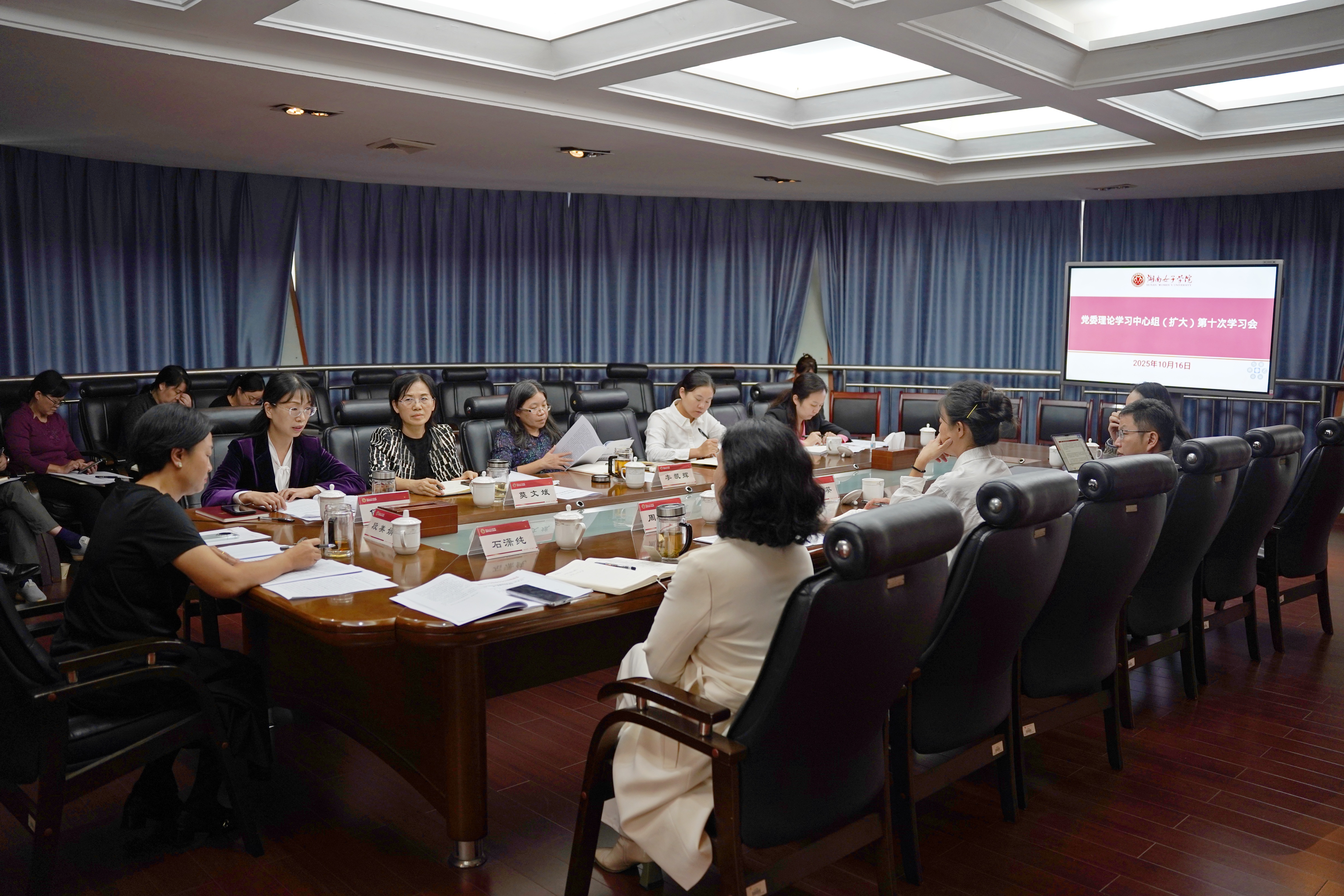 本网讯(宣传统战部 洪阳)10月16日上午,我校在办公楼二会议室召开2025年党委理论学习中心组(扩大)第十次学习会。会议围绕“加速妇女全面发展新进程”这一主题进行了深入的学习和专题研讨。学习会由校党委书记段美娟主持,全体校领导、二级党组织负责人、科研与学科建设处负责人、全国妇女/性别研究与培训基地、湖南省湖湘女性文化研究基地、女性发展研究中心、女性学专业教师及各学院女性研究教师代表参加了本次学习。