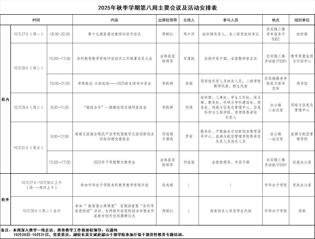 2025年秋季学期第八周主要会议及活动安排表