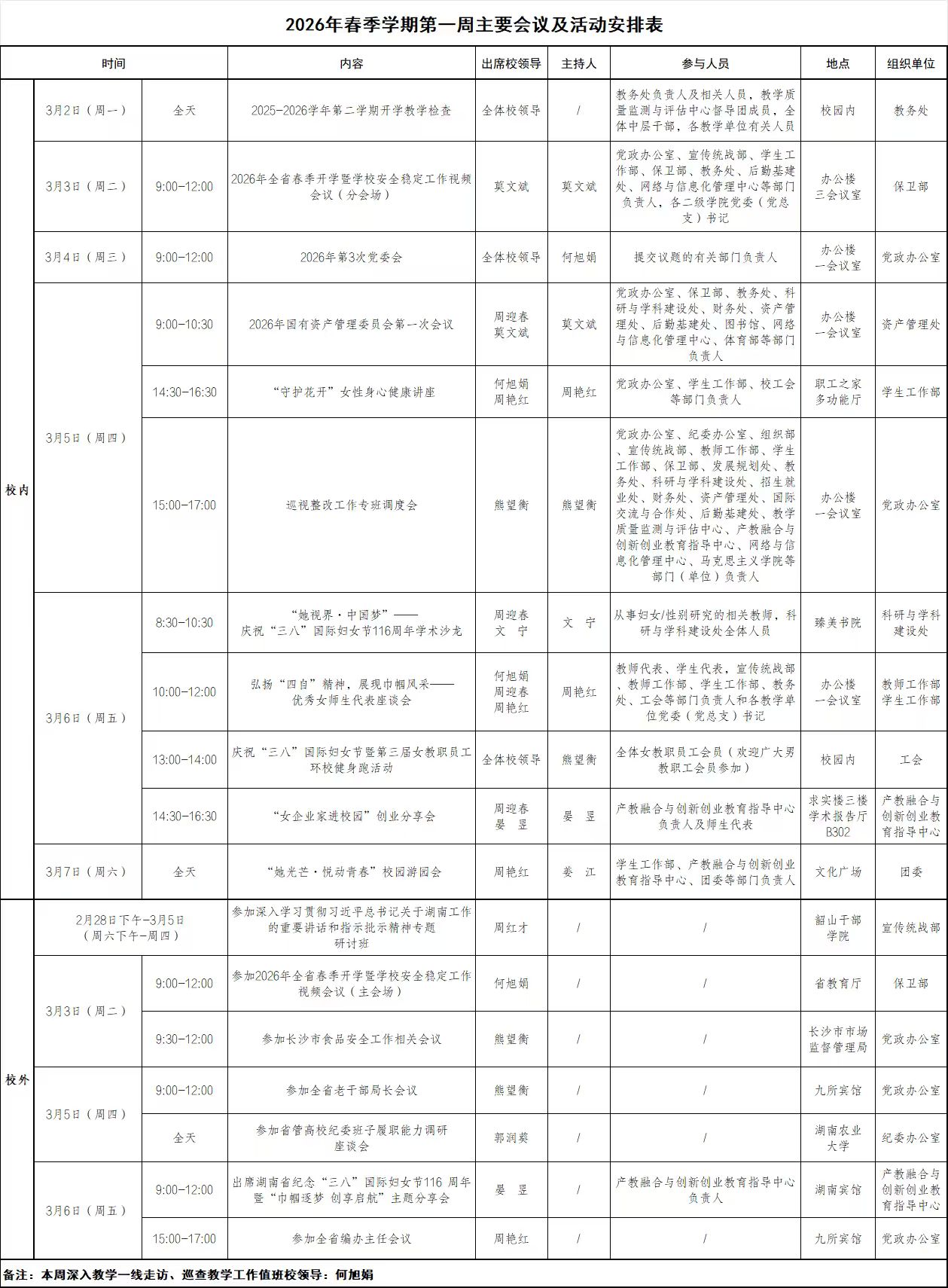 2026年春季学期第一周主要会议及活动安排表